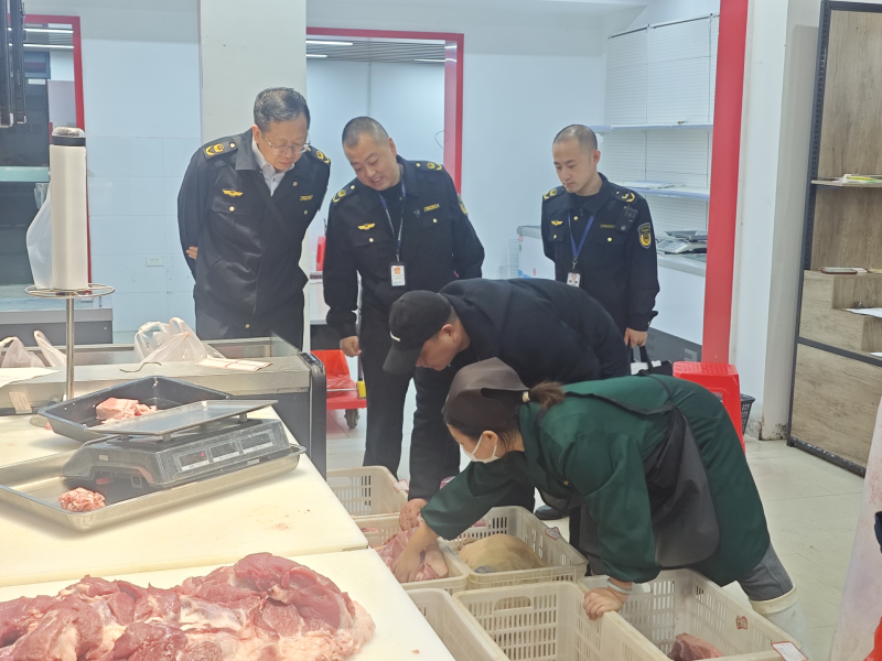 此次行动旨在纵深推进校园食品安全专项整治,确保广大师生舌尖上的安全。专班人员观看了嵘昌定点屠宰场猪肉处置全流程,抽查检查了3家校园食堂猪肉供应商和1家蔬菜供应商经营店,从猪肉的分割、称重、附单、出货,到蔬菜的分拣、称重、附单、出货全过程。仔细检查每一个环节,不放过任何一个可能存在问题的细节。检验检疫证明更是检查的重点,专班工作人员认真核对每一份证明,确保猪肉和蔬菜来源可靠、质量过关。随后,专班工作人员跟车到校,全程监督食材的运输过程,防止在运输途中出现任何问题隐患。