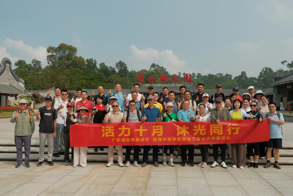 金风送爽,丹桂飘香,在这个充满生机与活力的季节里,为积极响应健康生活的号召,充实“八小时之外”的生活,进一步增强团队凝聚力,促进自然资源保护与可持续发展理念深入人心,近日,珠海市自然资源局工会携手省自然资源厅工会,在香山云道共同举办了主题为“活力十月·沐光同行”徒步活动。省自然资源厅工会专职副主席官丹心,市自然资源局党组书记、局长蒋道平,党组成员、副局长徐留根,副局长章征涛,以及省自然资源厅和市自然资源系统干部职工80余人参加活动。