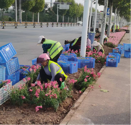 在大力提升绿色品质的同时,市园林绿化中心还在全市各大公园、主次干道、美丽街区栽种花卉新品种,根据不同季节栽植不同绿植盆栽,推动绿化向彩化美化升级。
