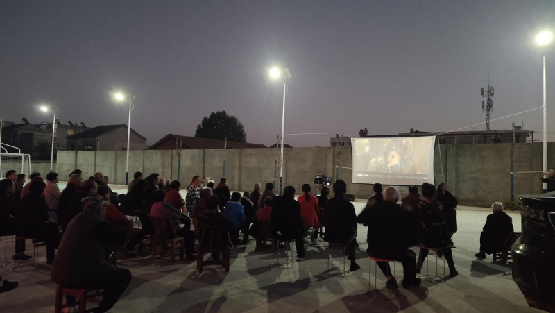傍晚时分,居民们纷纷扶老携幼,来到文体广场。大家或自带小板凳,或席地而坐,期待着电影的开场。广场上人头攒动,欢声笑语不断。随着电影的播放,大家沉浸在精彩的剧情中。孩子们在人群中穿梭嬉戏,老人们则静静品味着这温馨的氛围。