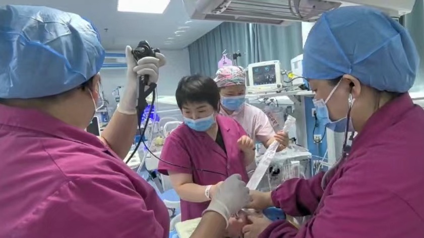 今年以来,黄陂区人民医院新生儿陆续完成多名重症肺炎、急性呼吸窘迫综合征患儿的肺泡灌洗。“今年年初,一例35天百日咳肺炎的宝宝,持续剧烈的气道痉挛导致窒息、气管插管困难,新生儿与儿童重症科团队在镇静下利用气管镜引导气管插管挽救了患儿生命。”新生儿与儿童重症科介绍,对于反复呛奶、呕吐、不明原因呼吸急促等需要排除气道畸形、咽喉反流的宝宝,气管镜也可以直接镜下观察明确诊断。