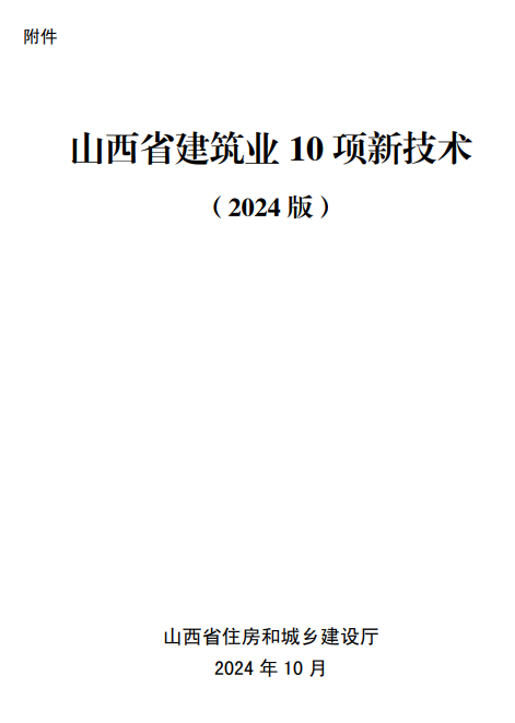 10月20日,山西省住房和城乡建设厅公布了《山西省建筑业10项新技术(2024版)》,集团为推进“山西省建筑业10项新技术”,加快建筑业科技成果转化,促进建筑业工业化、数字化、绿色化转型升级,推动我省建筑工程品质提升和建筑业高质量发展,加入了山西省住房和城乡建设厅组织的新技术编制组,经广泛研究和系统调研,深入分析近年建筑业新技术发展成果,认真总结工程实践经验,在住建部《建筑业10项新技术(2017版)》基础上,结合我省建筑工程特点,编制了山西省建筑业10项新技术(2024 版)文件。