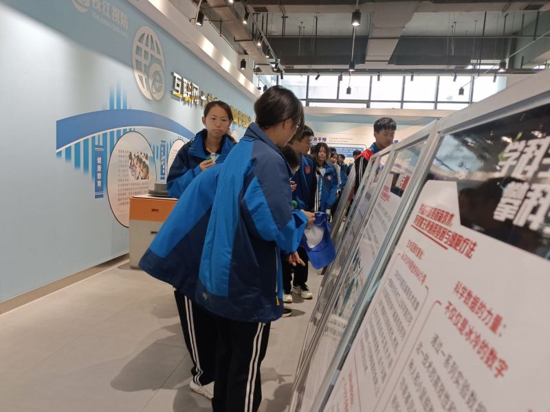 在科技馆一楼的临时展厅,30多块科普展板整齐排列,集中展示涵盖数学、物理、化学等学科知识以及量子信息、人工智能、集成电路、基因技术等前沿科技信息,展板一经展出就吸引了大量学生驻足观看。