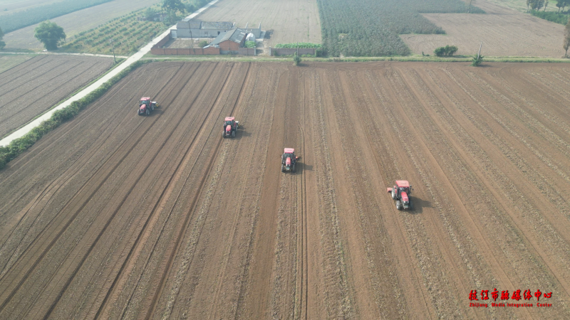 在播种现场,记者看到,两台旋耕机轰鸣作业,快速翻动土地,泥土飞扬。两台播种施肥一体机紧跟其后,均匀播撒麦种,同步施下肥料。旋耕、播种、施肥同时进行可最大程度保证土地墒情,利于小麦及时扎根生长,为秋播质量和来年丰收奠定基础。