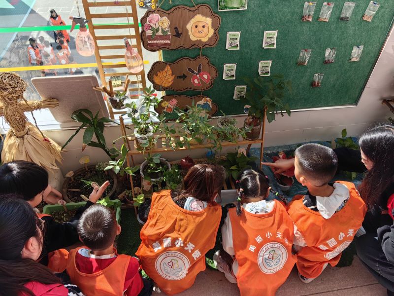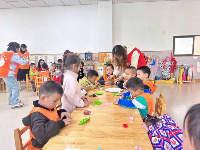绿意盎然的植物角里,青年志愿者带着孩子们仔细辨认花草。孩子们将枯叶一一收集,与废弃瓶盖、黏土一起制作出一只只可爱的小蜗牛,用创意为“垃圾”赋予新生,在动手实践中体验变废为宝的乐趣。