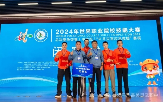 在矿井灾害应急救援赛项中,刘卫华、张军老师带领的跨专业团队展现了非凡的协作能力。汪文博、史晟、杨勇、徐凯瑞四位同学在模拟的紧急救援场景中,迅速反应,操作熟练,展现了他们平时训练的扎实基础和应对突发状况的冷静头脑。
