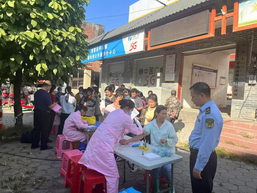 为加强平山镇餐饮单位、学校食堂、乡村厨师的健康管理,10月31日上午,鹿寨县平山镇食安办联合鹿寨县妇幼保健院和平山镇中心校,组织辖区内11个行政村及平山社区的105名食品从业人员进行健康体检,进一步筑牢食品安全防线。