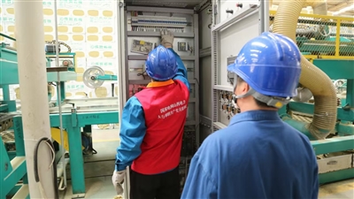 ????近日,国网潞城供电公司党员服务队和青年志愿者来到辖区内伟能新型建材有限公司进行入企走访,在企业工厂一线了解企业生产用电需求,排查用电安全隐患,助力企业安全发展。