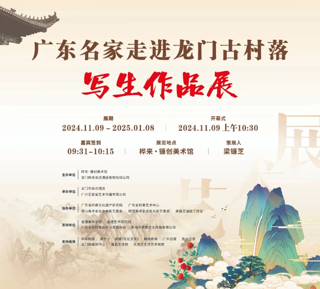 11月9日,广东艺术家走进龙门古村落写生作品展将在龙门县桦来·镰创美术馆开展。本次展览将展出21位广东艺术家描绘龙门乡村美景的60多幅作品,通过这些画作充分展现龙门乡村的大自然风光及古村落风貌。