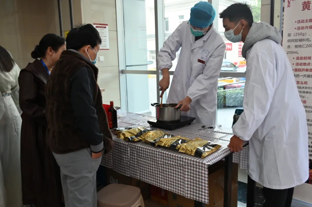 义诊活动现场,人头攒动。区中医医院义诊团队为约500余位居民朋友把脉问诊、辨识体质,提供专业的膏方咨询和诊疗服务,量身定制个性化的膏方,当日开具熬制了60余份个性化膏方。