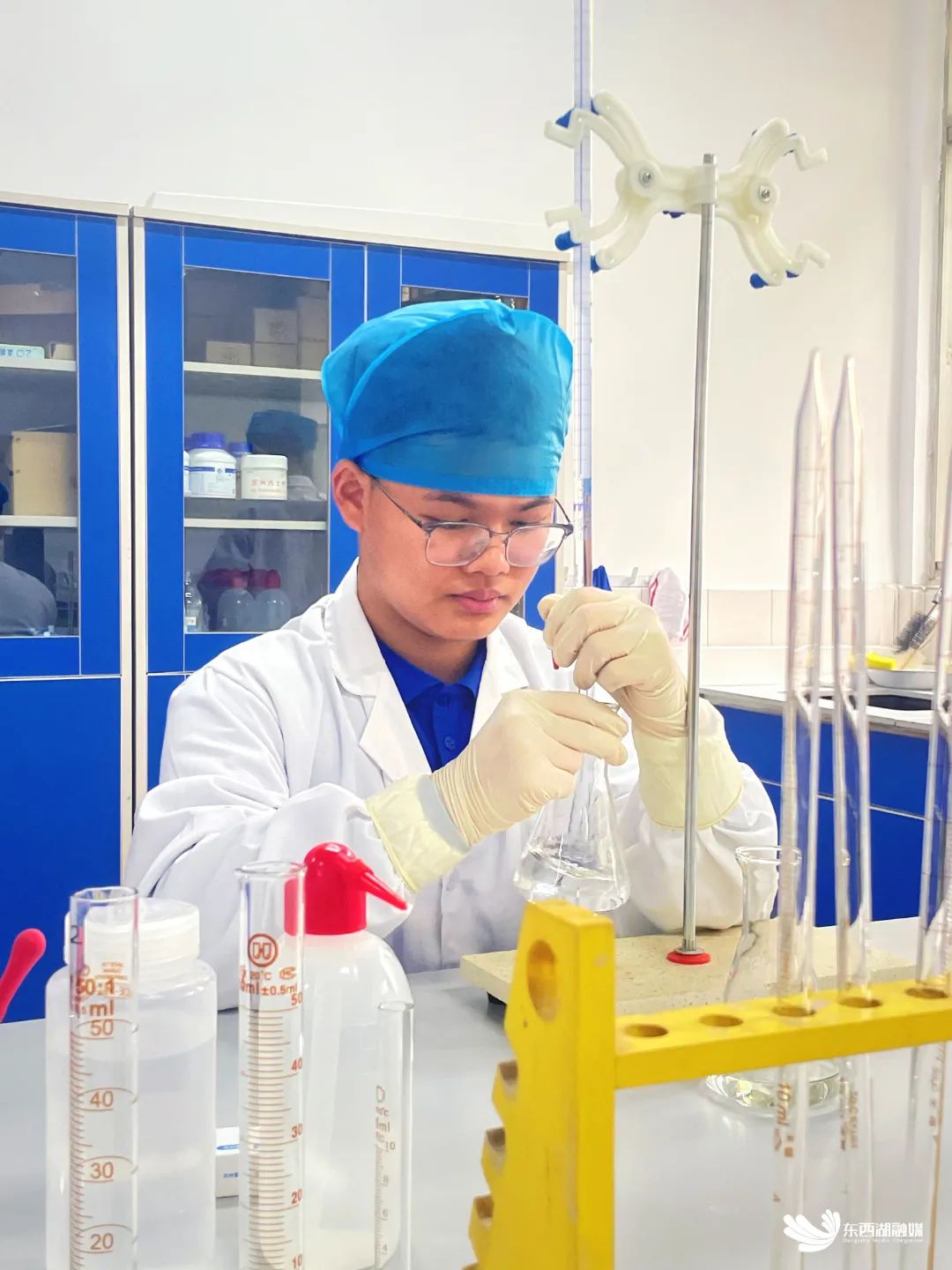 比赛当天,四位同学分工明确,各司其职。柯善楠负责协调全部工作安排,确保实验过程顺利进行;张睿凌凭借扎实操作基础,成为团队的核心技能操作骨干;杨雪在关键时刻给予团队鼓励,稳定军心;邓雨菲担任团队的讲解员角色,清晰、流畅地讲解着实验过程和结果。