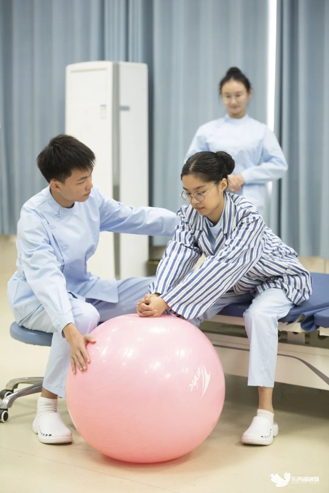团队配合,针对“平衡功能训练”开展练习。