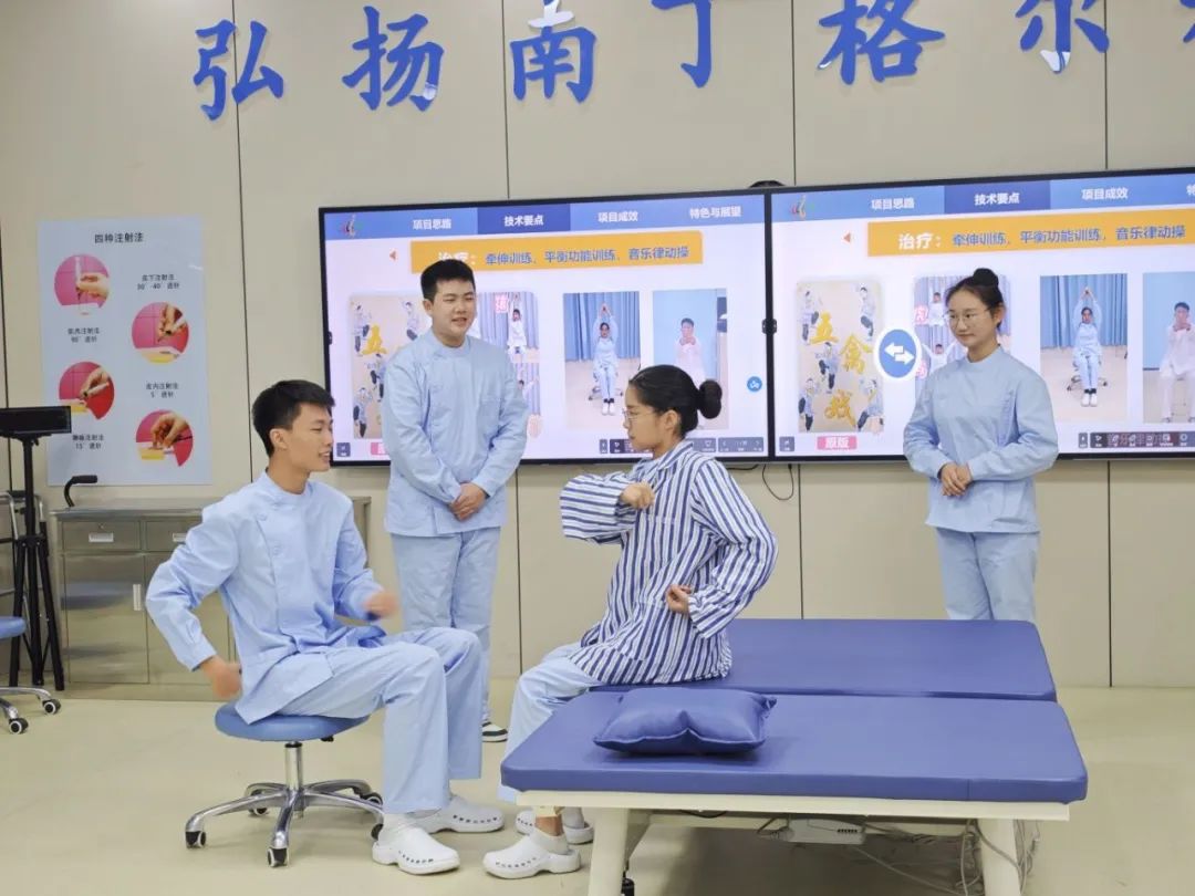 在比赛中,除了操作展示外,同学们还设计了趣味性展示环节,选用《粉红色回忆》,通过唱歌的方式缓解康复者的焦虑心态,体现了医疗服务的人文关怀,这一设计赢得了评委和观众的一致好评。