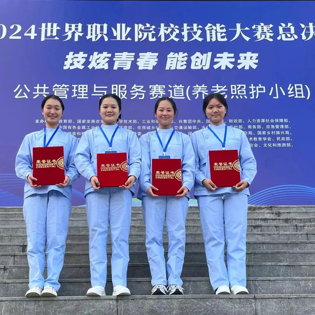 母婴照护赛项团体银奖,幼儿保育专业学生刘心语、宋君哲、吴思妍、刘欣然获得母婴照护赛项团体银奖;婴幼儿保育赛项团体银奖,幼儿保育专业学生李飞扬、徐芷喻、韩鹏倩、高志远获婴幼儿保育赛项团体银奖;产品数字化设计与开发赛项团体铜奖,数控专业学生随天豪、赵杰、王书涵获产品数字化设计与开发赛项团体铜奖;养老照护赛项铜奖,护理专业学生王瑾、李秋悦、沈紫涵、成敏琪获养老照护赛项铜奖。