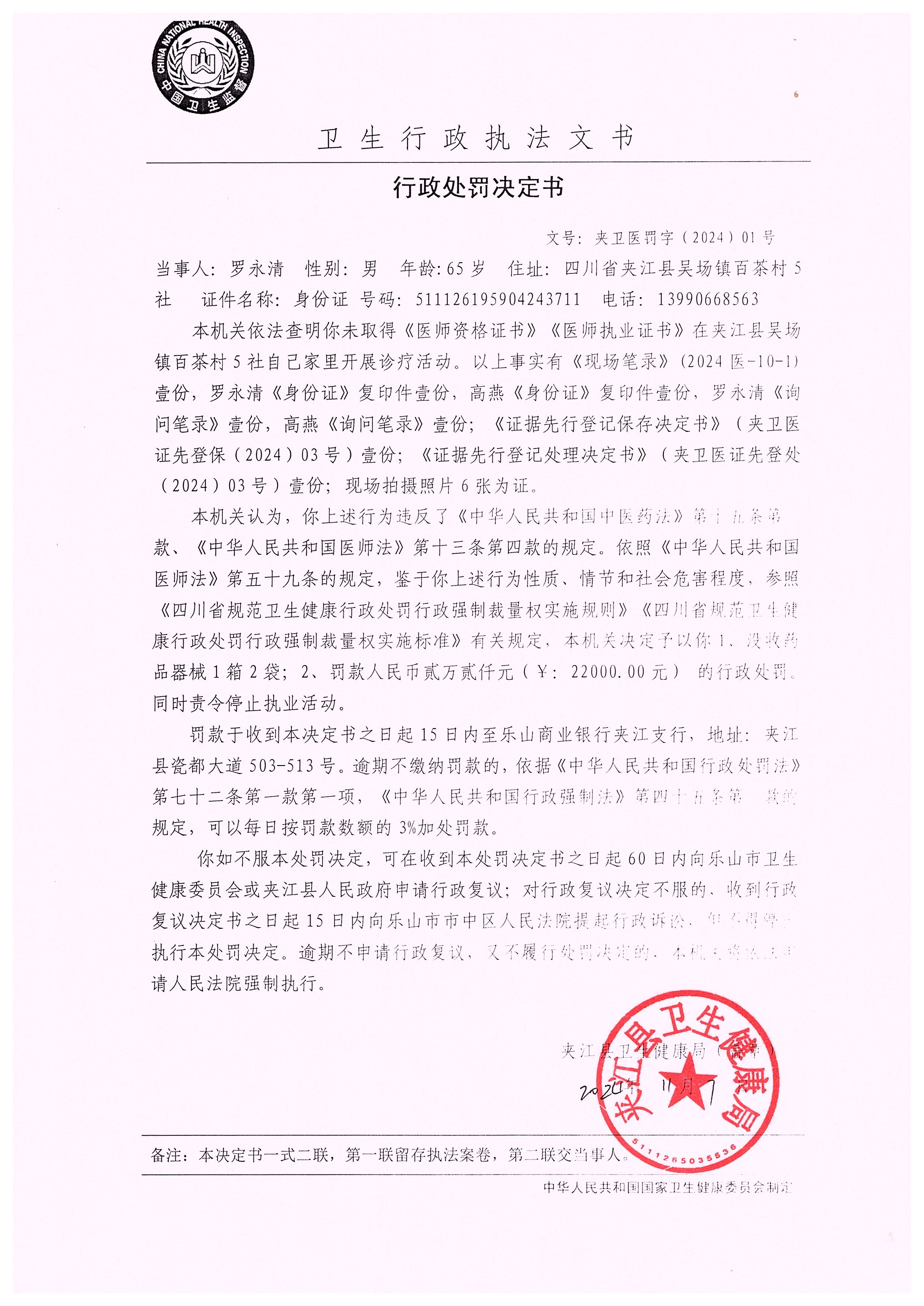 行政处罚决定书(罗永清)