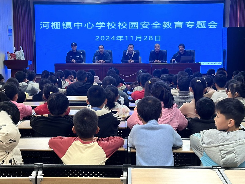 11月28日上午,河棚镇组织开展安全教育进校园活动。活动邀请了河棚派出所干警担任主讲人,河棚镇中心学校五年级全体师生参加了活动。
