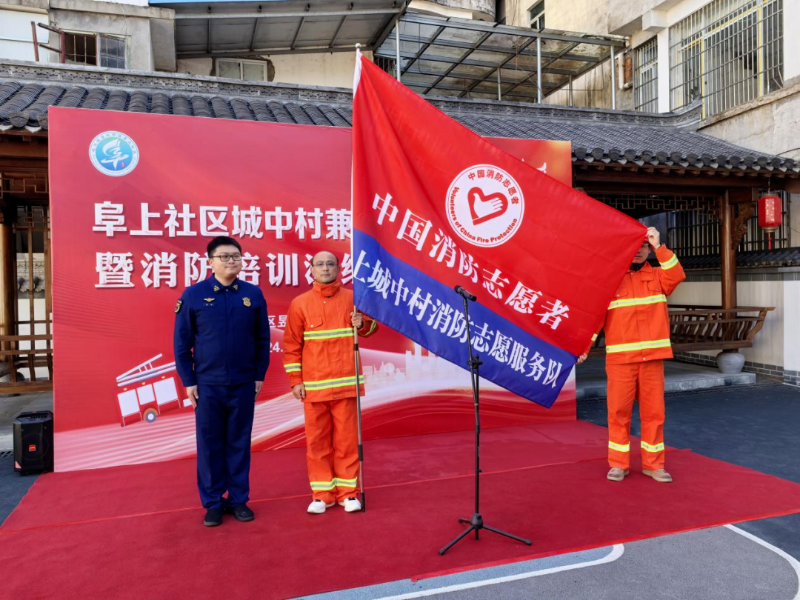 阜上社区举行城中村兼职消防队成立仪式暨消防培训演练活动