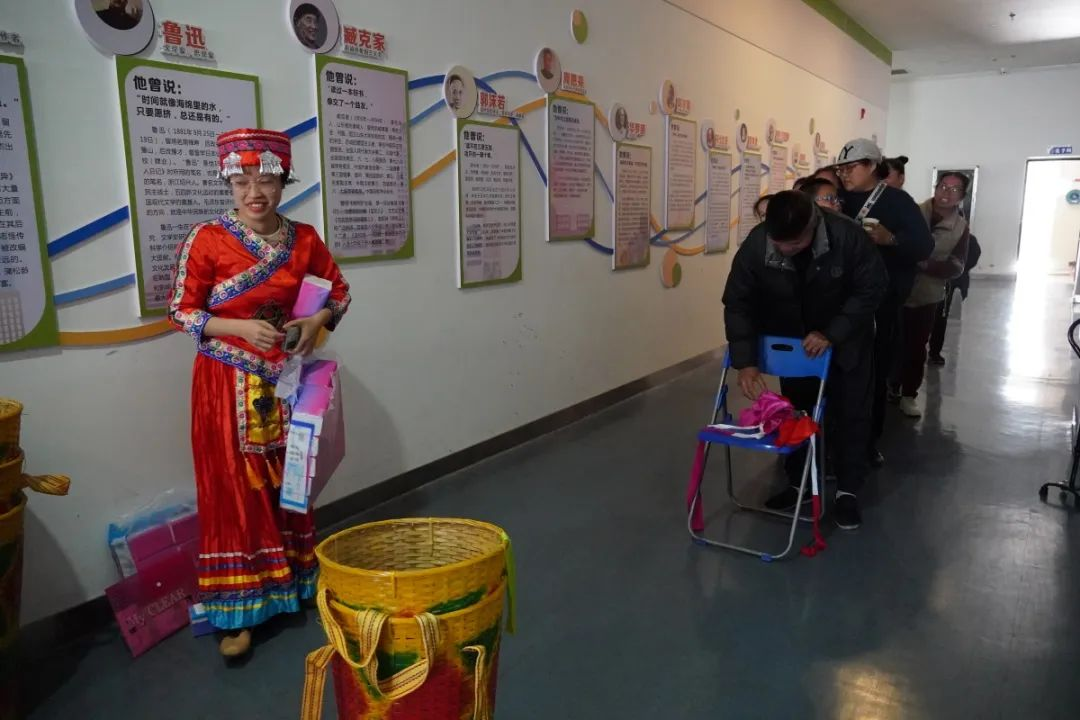 在文艺表演环节,残疾人表演者们为观众带来了民族服装走秀、歌曲演唱等不同类型的精彩表演,充分展现了残疾人群体热爱生活、昂扬向上的精神风貌。县中医医院带来的《八段锦》表演点燃了所有人的热情,大家跟着节奏,认真练习,在轻松愉快的氛围中感受传统健身运动的魅力。最后,在志愿者的协助下,残疾人朋友还参与了“投绣球”、“吹乒乓球”、“抛圈”、“民族拼图大挑战”等趣味活动,现场气氛热烈,充满了欢声笑语。