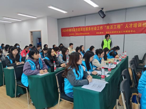 为提升我县“双百工程”社会工作者的专业能力和服务水平,2024年11月26日至27日,由佛冈县民政局主办,清远市青桥社会工作服务中心承办的2024年佛冈县兜底民生服务社会工作“双百工程”人才培训班在佛冈县人才驿站3楼会议室顺利开展。县民政局党组成员罗兴波,县民政局社会救助和社会事务股股长刘贤船,清远市青桥社会工作服务中心项目主任高节出席了培训班开班仪式,全县6个镇社工站共79名社工参加了培训。
