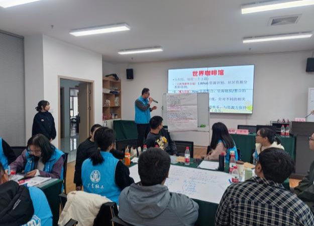 来自珠三角地区资深社会工作讲师范志杰、周海明围绕“如何整合跨领域和空间的资源,构建社区资源库”主题,从资源识别、资源整合、资源呈现、资源维系四个维度,讲解有效整合和构建完善的社区资源库的技巧方法。同时,课堂通过“世界咖啡馆”和“无名小组”的互动形式,激发学员们对主题进行头脑风暴、知识共享、交流协作,让每个人都有机会分享自己的经验和见解,从而拓宽社工们的视野和思路。
