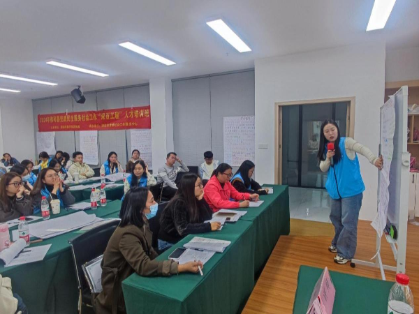 县民政局党组成员罗兴波强调,“双百社工”是以基层一线为兜底民生服务的主阵地,社工作为困难群体的搜寻者、贴心人、暖心人,要保持好学之心,学习各地的好做法、先进经验,梳理存在问题,不断探索创新服务方法,切实提高服务质量和水平,并为培训的顺利进行、确保成效,对本次参与培训的人员提出了认真学习、学以致用等要求。本次培训分为两个班级,采用重实践、强互动的培训形式,主要围绕“资源整合”“项目管理”两个专项课题分别为两班学员们授课。
