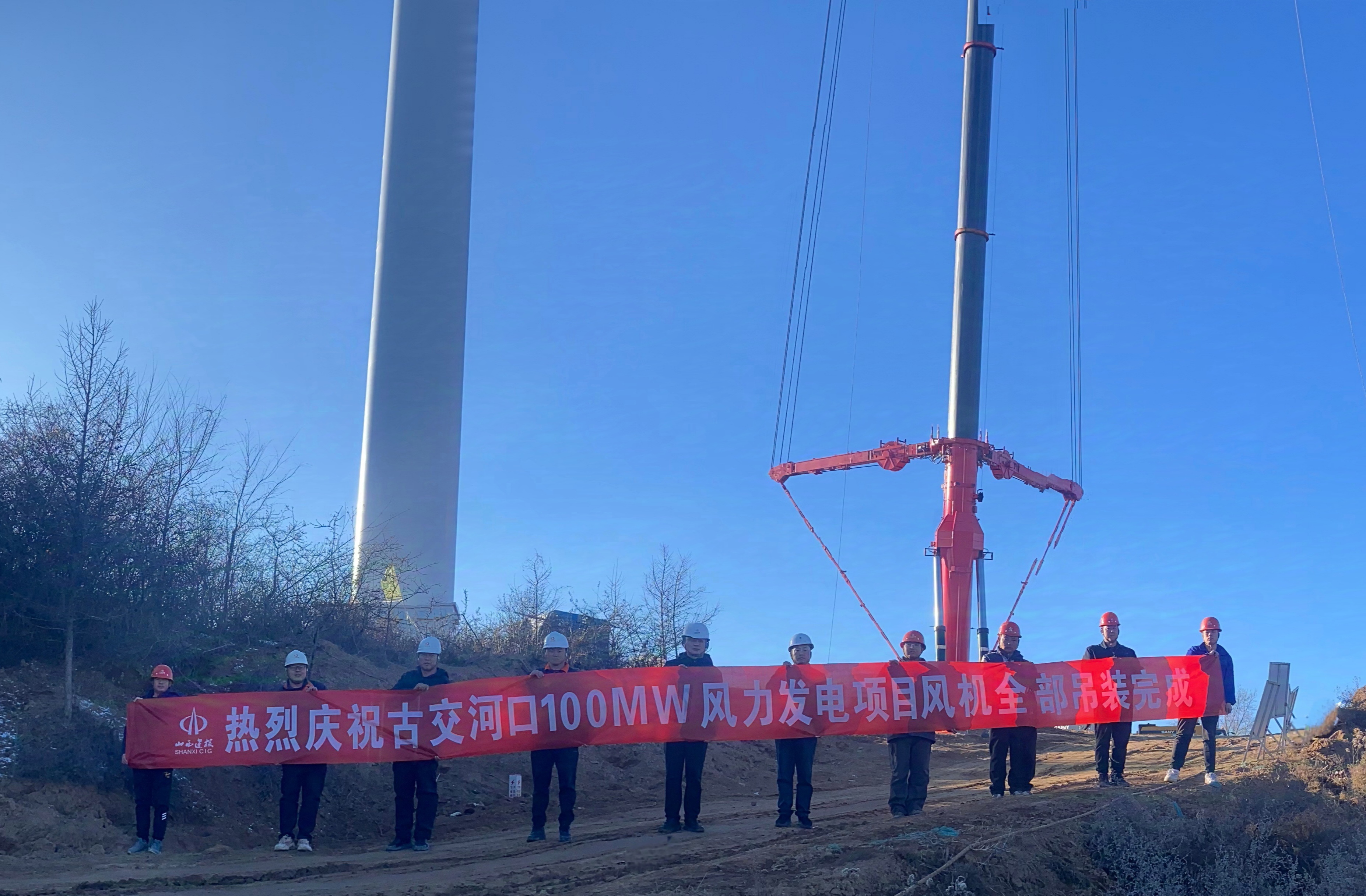 风机吊装工作圆满完成,标志着项目即将进入全容量并网冲刺阶段,古交河口100MW风力发电项目全体人员将继续秉持严苛态度、高标准打造精品工程,奋力冲刺全容量并网节点目标,为公司高质量发展贡献力量。