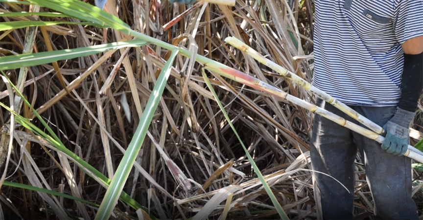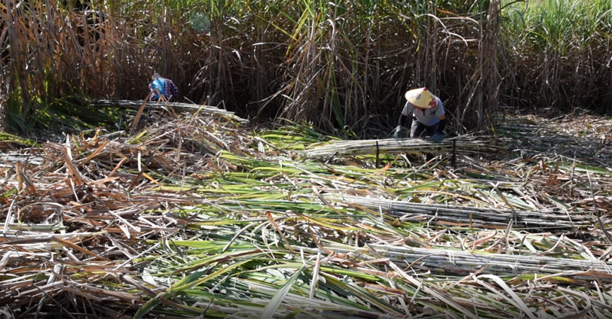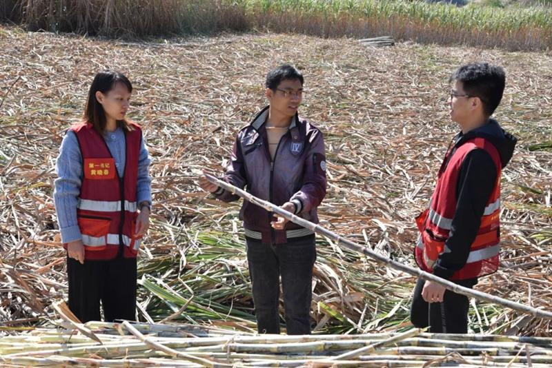 四排镇水头村驻村第一书记黄晓春说:“我们村目前聘请了15个群众来砍甘蔗,有砍伐工还有码工。砍伐工的工钱是3.5元一捆,码工的工钱是30元一吨,通过这个途径给群众带来增收。”