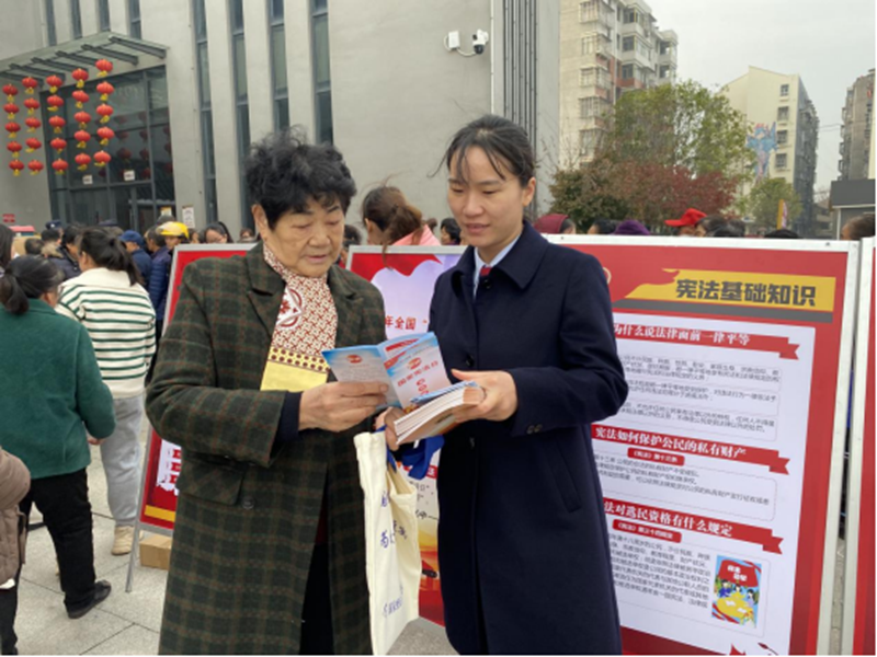在华容区市民文化中心广场,区法院志愿者向过往群众发放宣传资料,普及宪法知识,传递法治精神。她们以实际案例导入,深入浅出地为群众讲解《中华人民共和国宪法》等法律知识,引导群众依法保护自身合法权益,了解自身的权利与义务,进一步提高居民群众自觉守法、遇事找法、解决问题靠法的法治观念。群众认真阅读宣传资料,积极参与提问互动,现场氛围热烈而有序。