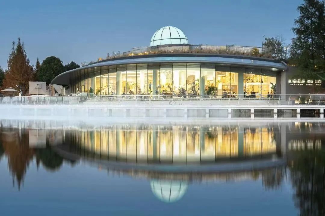 江南书局·疁城之瞳是嘉定正在重点打造的远香文化环的重要节点之一。整个文化环项目围绕远香湖展开,串联起文化、艺术和生活的多重体验。环湖步道两侧,分布着“碟坞”“树之间”“湖之弧”“竹林雅筑”等10个极具设计感的建筑小品,它们像散落在远香湖畔的明珠,点缀着自然景观,也为市民提供了多样的打卡体验和活动空间。
