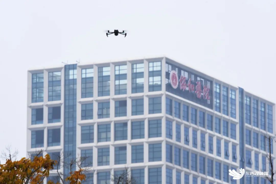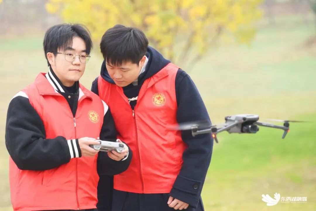 伴随着螺旋桨的阵阵嗡鸣声,一架无人机应声而动,从白马泾公园迅速上升,按照既定路线飞行,并将航拍影像的清晰视频画面实时传回。
