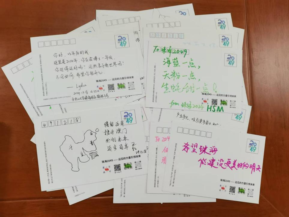 破冰分享环节——我的珠海“奇缘” 活动在轻松愉快的破冰分享环节中拉开序幕。主持人通过“珠海认知小调查”方式,引导在场师生在轻松愉快的氛围中了解珠海的历史人文、城市概况、地理特征等基本信息。随后,由学生们分享自己与珠海的“奇缘”,大部分同学都提到第一次来到珠海的趣味故事,以及在长期学习生活中逐渐感受到的珠海城市魅力——气候宜人、生态宜居、大海怡情、海岛旖旎…… 珠海认知小调查 学生分享他的珠海奇缘 主题问答环节——对话2049城市规划 章征涛作主题分享 互动问答环节 愿景描绘环节——面向2049的珠海想象 对珠海2049有一个清晰的了解后,来自不同院系的同学们自由组队讨论,结合各自的专业知识,以口头演讲、手绘草图、思维导图等多种方式展示了他们对于珠海2049的创意构想。这些构想涵盖了珠海未来的多个关键领域,包括产业升级转型、生态宜居城市建设、海洋资源开发利用、特色文化传承创新、城市形象塑造提升、交通网络优化,以及人才吸引和市民生活品质提升等。此外,测绘科学与技术学院党委副书记许粤老师提出,中山大学珠海校区要加强校地合作,广大师生积极参与珠海的建设和发展,共同助力珠海发展。 愿景描绘 小组分享 学生们还在精美的明信片上写下对珠海2049的真挚祝福与期望。这些明信片将存放在珠海市规划展览馆内,在二十五年后重新开启。 本次活动收集到的明信片 参与活动的同学获得了《珠海面向2049城市发展战略规划》公众参与证书。 颁发证书及活动合影