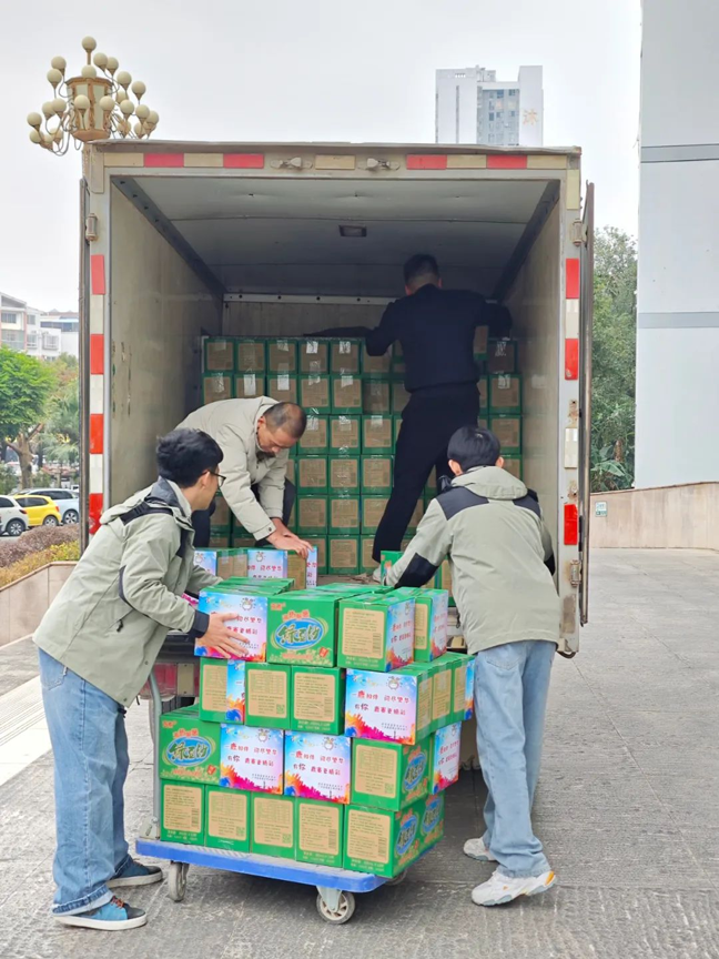在特产挑选与打包现场,四排砂糖橘、拉沟罗汉果、中渡米粉、绿洲豆奶、鹿寨酸嘢、黄后牛恋头菜酱等鹿寨特产整齐排列。工作人员热情地将这些精心挑选、极具地方特色的特产有序封装。这些特产蕴含家乡文化底蕴与风土人情,有的是传承百年的传统美食,有的是我县独有的特色制品。工作人员还贴心地在包裹中附上了介绍家乡发展近况与鼓励话语的信件,让学子们在品尝家乡味道的同时,也能了解家乡的新貌与变化,感受家乡对他们的殷切期望。