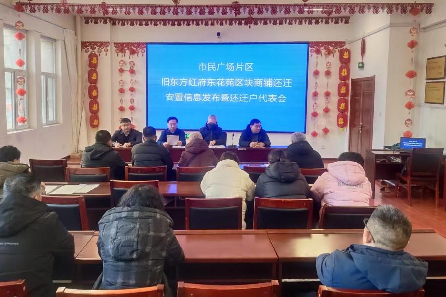市民广场片区、旧东方红府东花苑区块商铺还迁安置信息发布暨还迁户代表会召开