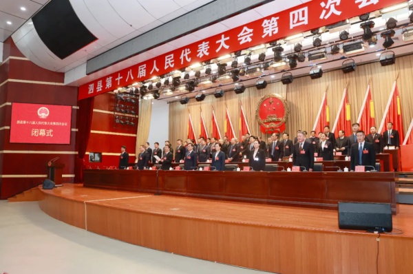 1月7日下午,泗县第十八届人民代表大会第四次会议圆满完成各项议程,在县委党校礼堂胜利闭幕。