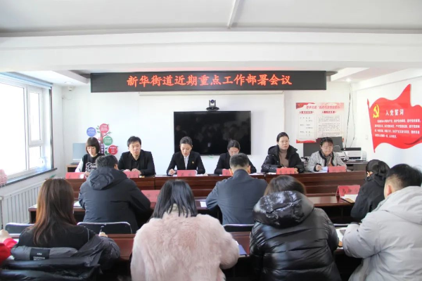 1月7日,新华街道组织召开近期重点工作部署会议,街道党工委书记吴威主持会议,街道领导班子成员、各站办所长、各社区(村)书记参加会议。
