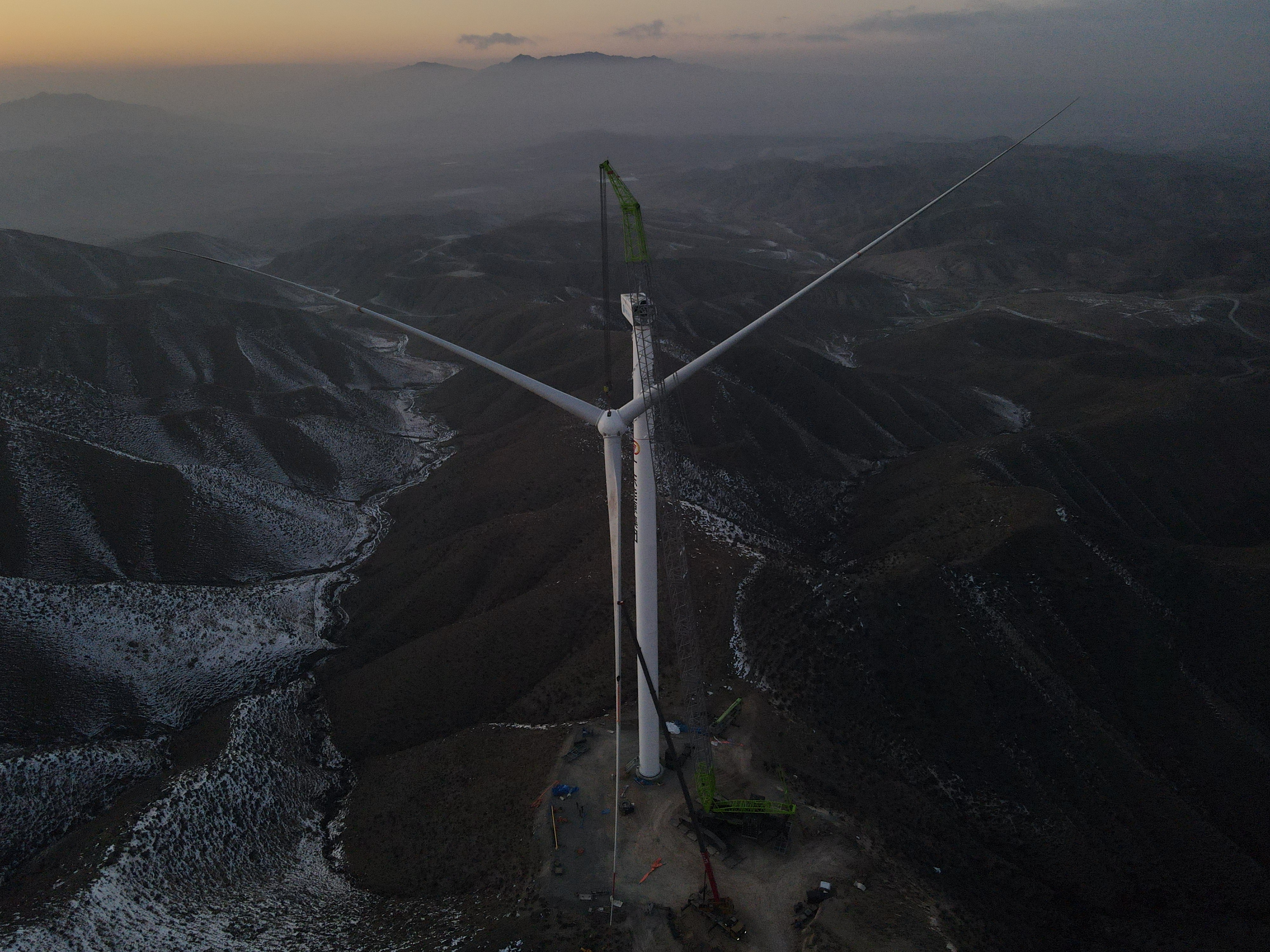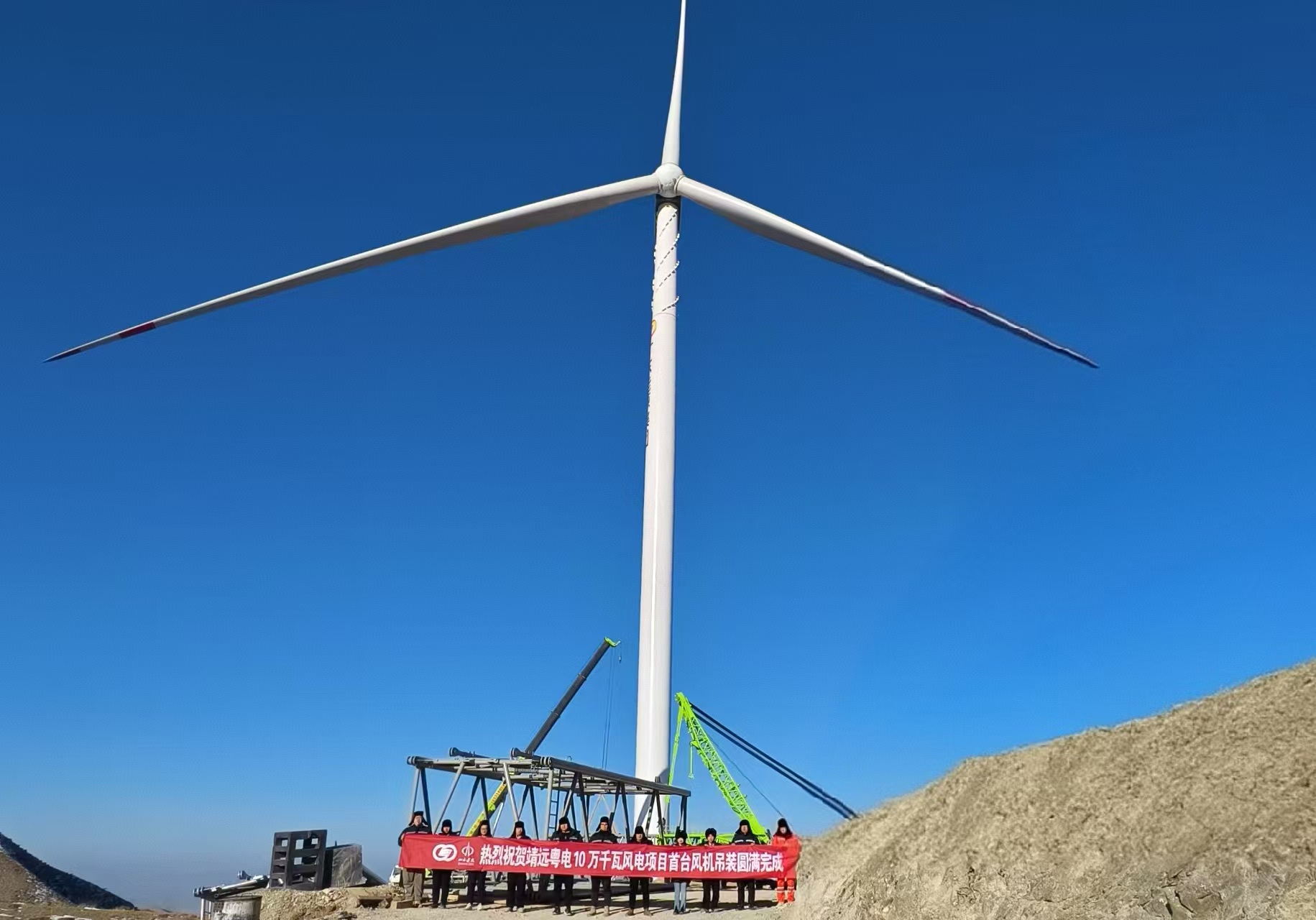靖远粤电10万千瓦风电项目首台风机吊装顺利完成