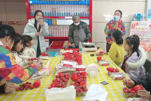 活动现场,工作人员和志愿者们耐心地指导孩子们把洗好的水果依次串在竹签上。随后,在家长的协助下,小朋友们将串好的糖葫芦放入熬制好的糖浆中一转,瞬间,裹满糖衣、色泽诱人的糖葫芦就呈现在眼前。孩子们开心地品尝着自己亲手制作的糖葫芦,笑容格外灿烂。