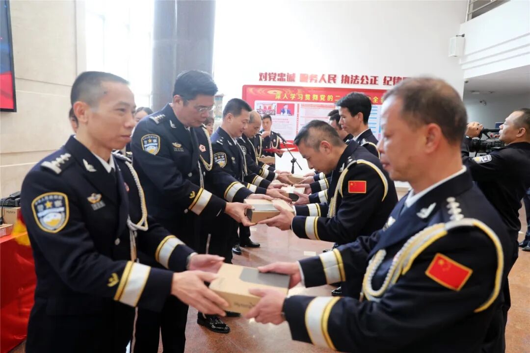 2025年1月10日是第五个中国人民警察节,也是全国第39个“110宣传日”。为进一步加强公安队伍建设,提升警察职业荣誉感、使命感与自豪感,梅县区公安分局举办升警旗、表彰奖励大会、110宣传日等系列活动。 升警旗仪式 8时整,副区长、区公安分局党委书记、局长陈海晗带领分局领导班子和民警代表高唱中华人民共和国国歌。随着“迎警旗”口令的发出,仪仗队护旗手昂首挺胸,迈着铿锵有力的步伐,护卫警旗入场。当警歌声响起,在全体民警的注视和齐声高唱下,护旗手振臂扬旗,红蓝底色的中国人民警察警旗冉冉升起,迎风招展。 “我是中国人民警察,我宣誓!”全体民警重温《公安机关人民警察誓词》,用铿锵有力的誓言表达了作为人民警察的自豪和荣耀、责任和担当,展示了新时代梅县公安队伍的良好精神风貌。 “110”宣传活动 9时,梅县公安在梅县区新城办事处华侨城广场举办以“守正创新110 协同高效护安宁”为主题的“110 宣传日”活动。现场通过写福送春联、法制宣传、警务咨询等形式,向广大群众大力宣传交通安全、反电信诈骗等相关知识,形成良好宣传氛围,进一步赢得了广大群众对公安工作的关注、理解与支持。 警用装备发放 为进一步推动基层治理体系和治理能力现代化,提升警务效能,优化警用装备。1月10日下午,举行警用装备发放仪式,此次发放的警用装备种类齐全、数量繁多,涵盖了警车、5G单兵图传、新型对讲机等多种警用装备。仪式现场,崭新的警用装备依次排列,为更好开展日常执勤执法工作提供坚强保障。 表彰奖励大会 为庆祝第五个人民警察节,激励全警在新的一年里忠诚担当、勇于争先、不忘初心、砥砺前行。1月10日下午,梅县公安组织召开2025年中国人民警察节梅县公安表彰奖励大会。会上,观看了2024年度梅县公安工作视频片,宣读了表彰奖励决定,局领导分别为2024年度先进模范集体代表、民警立功代表、民警、辅警嘉奖代表颁发荣誉证书,以此激励全体民辅警在新的一年里坚定理想信念,在新征程上再立新功,再创佳绩。 副区长、公安分局党委书记、局长陈海晗全面总结了2024年公安工作,并就抓好当前和今后一个时期公安工作作出了具体部署。要求全区公安民辅警:一要高举旗帜、永葆初心,确保梅县公安工作始终沿着正确的方向前进。二要牢记使命、忠诚履职,全力建设更高水平的平安梅县。三要改革创新、锐意进取,积极推动梅县公安工作高质量发展。四要锚定标准、严管厚爱,着力锻造高素质过硬梅县公安铁军。以开局即开战的姿态,争先创优的劲头,奋力推动梅县公安各项工作再上新台阶,为建设更高水平的平安梅县贡献力量。 警营开放日 1月5日下午,民辅警、职工家属小孩共200余人一同走进梅县公安,让孩子们零距离感受警营文化,体验警营生活。在民警的指导下,他们“亲密接触”了盾牌、枪械等警用装备,还亲自“试驾”了铁骑摩托车和特警作战车,让他们真真实实地过了一把“警察瘾”。 民警还化身“安全讲师”,用通俗易懂、生动有趣的方式为孩子们讲解交通安全、反诈等安全知识。同时,还通过知识竞答、互动小游戏等环节,让孩子们了解到隐藏在身边安全问题,进一步增强孩子们的安全防范意识。 2025 新的一年 我们将继续锲而不舍 一路前行,守护万家灯火 祝愿全体战友 中国人民警察节快乐!