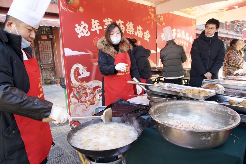 本届蛇年庙会设置了100个市集摊位,舞龙舞狮表演、美食小吃制作、非遗技艺展示、特产展销等活动让人应接不暇。在往年基础上,本届庙会进一步深化主题,“乡村振兴”“三产融合”等都成了关键词。