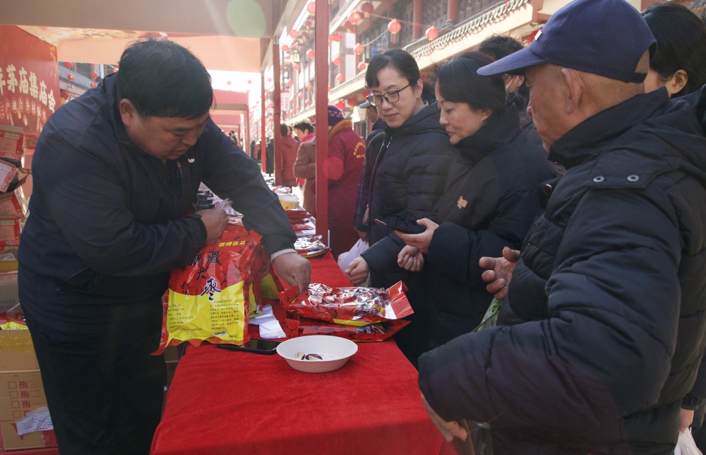 “这次我们特意带了100万元的货品过来,光庙会现场就摆了6个摊位。”新疆双河农优商贸有限公司执行董事李明权说,这是他们第二次参加茅庙集庙会。去年他们通过现场零售和批量签单,销售额高达30多万元。