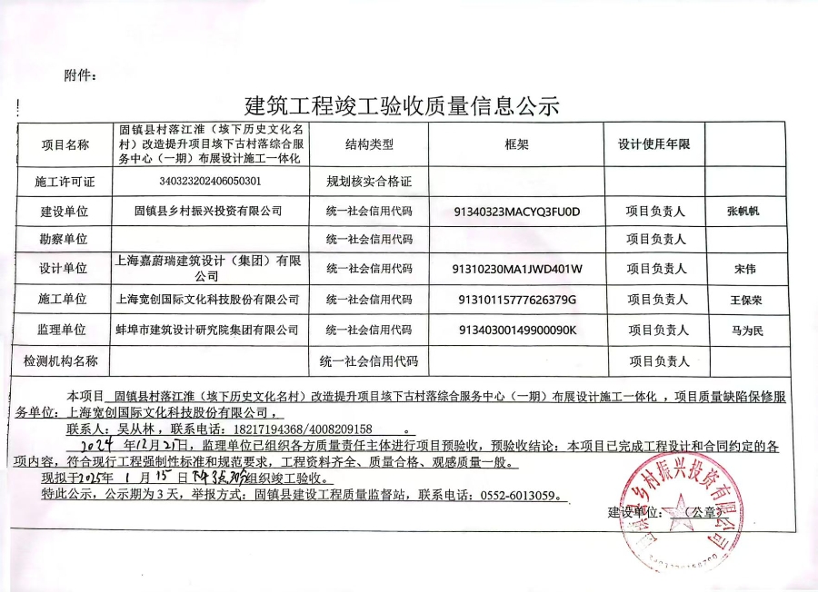 固镇县垓下古村落业态提升改造工程(一期)-垓下古村落综合服务中心(一期)布展设计施工一体化竣工验收公示