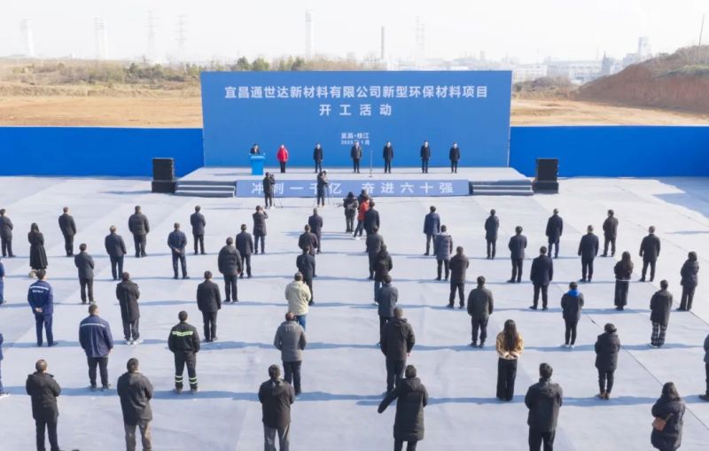 宜昌市2025年一季度重大项目集中开工活动结束后,宜昌通世达新材料有限公司新型环保材料项目开工活动在姚家港化工园举行。枝江市委书记余峰宣布开工。