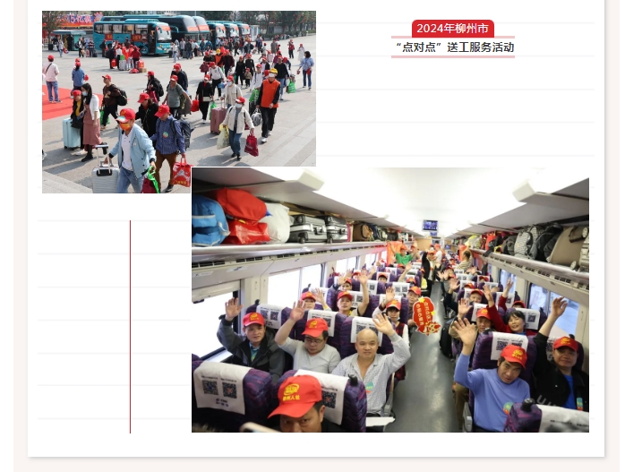 为深入贯彻落实自治区党委、政府和柳州市委、市政府有关工作部署,根据《广西壮族自治区人力资源和社会保障厅关于开展元旦春节送温暖活动做好困难群众民生保障有关工作的通知》要求,结合我市实际,现计划开展2025年柳州市春节期间农村劳动力“点对点”赴粤返岗务工送工服务。