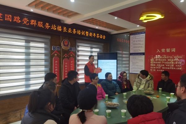解放街道育才社区建国路网格党群服务站楼长业务培训暨新年茶话会