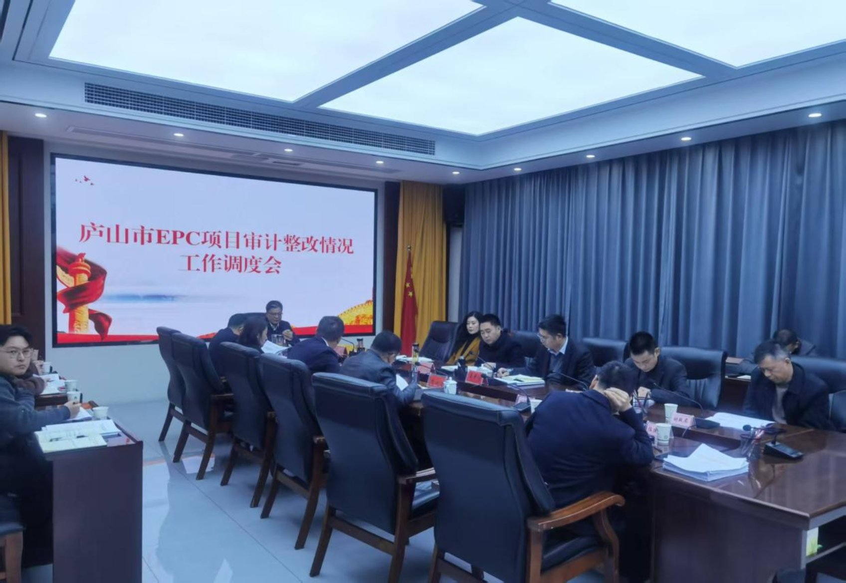 日前,庐山市政府组织召开了EPC项目审计整改情况工作调度会。会上,市审计局汇报了审计调查发现问题整改情况。市分管领导和责任单位分别就本单位的整改情况及下步整改打算做了汇报。最后市长王斌强调,政府各分管领导、各责任单位要自我加压,扎实做好审计整改“下半篇文章”,要举一反三、深刻反思抓整改,切实将审计整改转化为治理效能,以高质量审计整改成效服务、保障全市经济社会高质量发展。