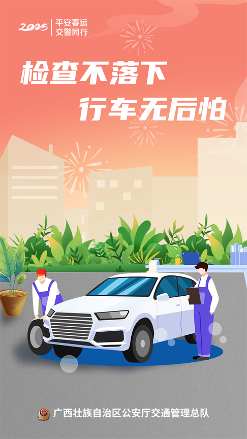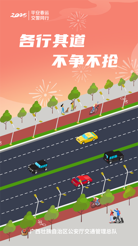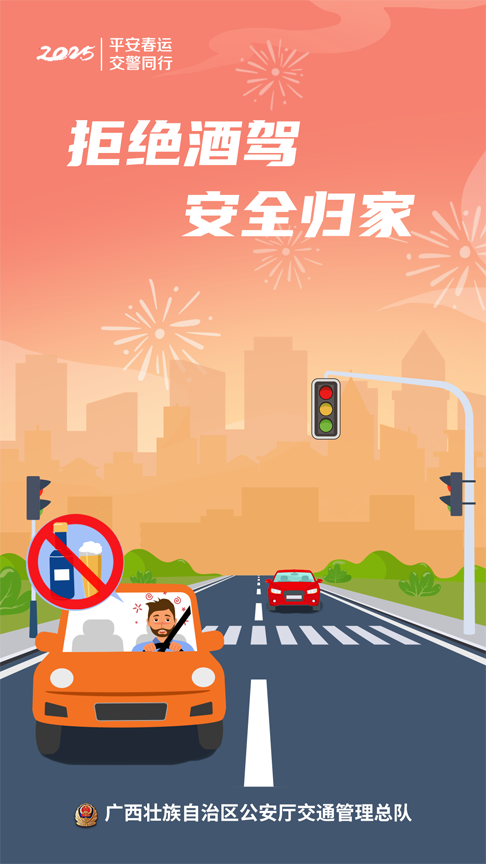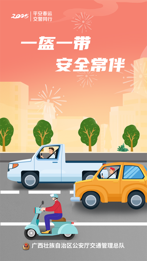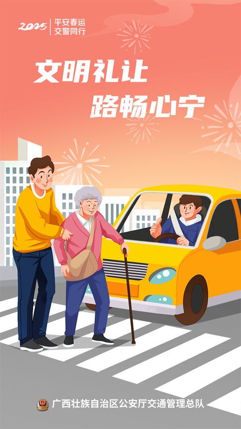随着春节的脚步日益临近,我们迎来一年一度的春运大潮。今年春运从1月14日开始,2月22日结束,为期40天。在这个阖家团圆、欢度佳节的美好时刻,为了让市民朋友回家的路更加平安顺畅,广西壮族自治区公安厅交通管理总队特此向您发出以下几点温馨提醒: