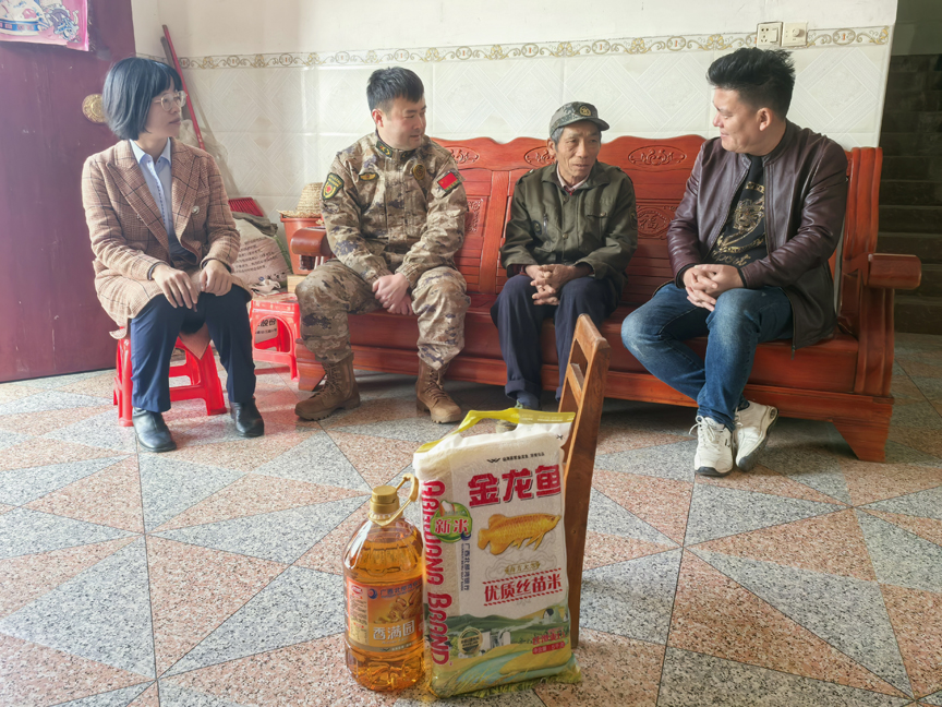 春节将至,为传递党和政府以及社会各界对退役军人的关爱,让他们度过一个温馨、祥和的节日,连日来,鹿寨县退役军人事务局联合县爱国拥军促进会、农业银行鹿寨支行、广西北部湾银行鹿寨支行和鹿寨县沐君农林科技有限责任公司,积极开展2025年春节走访慰问退役军人活动。