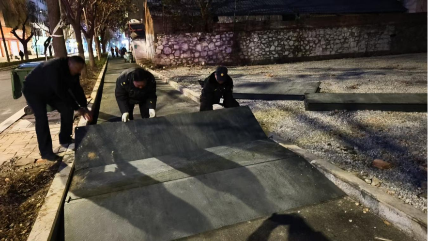 当晚6时许,群众反映柳树行有一大片铁板挡路,影响通行。县城市管理局高度重视,第一时间安排综合行政执法大队一中队晚班执法人员前往处理。执法人员来到现场发现,柳树行中段西侧人行道上堆放铁板7块,由于数量较多,占地约15平方米,高出路面5公分左右,形成落差台阶,加上附近靠近许慎中学,人流量大,夜间行人稍不注意的话,极容易拌倒,后果不堪设想。见此情况,执法人员甘冒严寒,发扬不怕脏的劳动精神,掀的掀、搬的搬、抬的抬,齐心协力将一块块铁板抬到旁边的空地,历经半小时的处理,终于将堆满路口的门板重新清理干净,让路面恢复了正常通行。