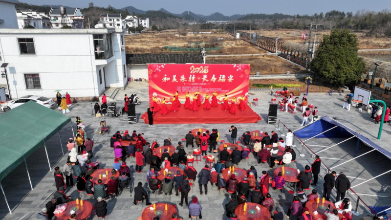 1月15日,屯溪区奕棋镇朱村举行“和美朱村,长寿福宴”活动,邀请村里百余名70岁以上的老人欢聚一堂,看演出、吃长寿宴、共忆美好生活。