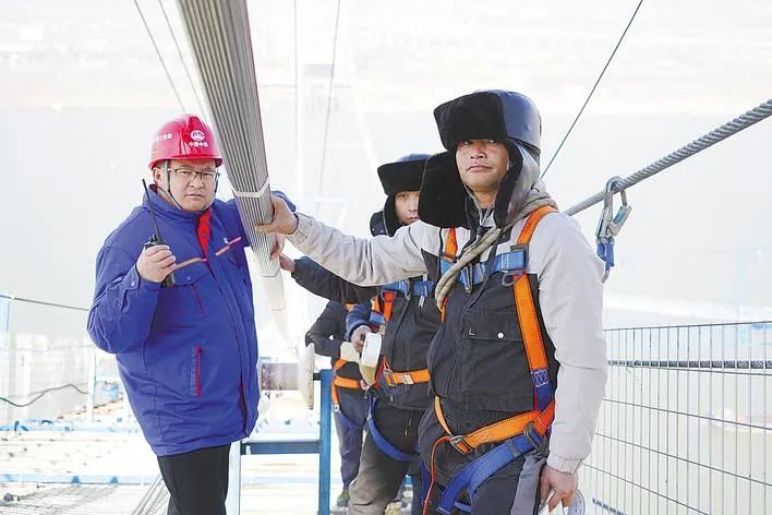 “主缆架设要求气温在10℃以下,一般在冬季。”黄辉工作了20年,在湖北参建的长江大桥就有4座。这种腊月寒风、百米高空的作业场景,他早已习以为常。